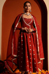 A-Line Kurta Set with Dupatta - Dark Mauve