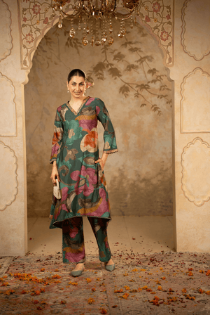 A-Line Kurta Set with Dupatta - Deep Teal Green