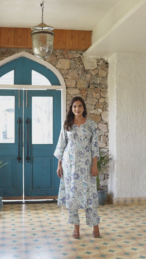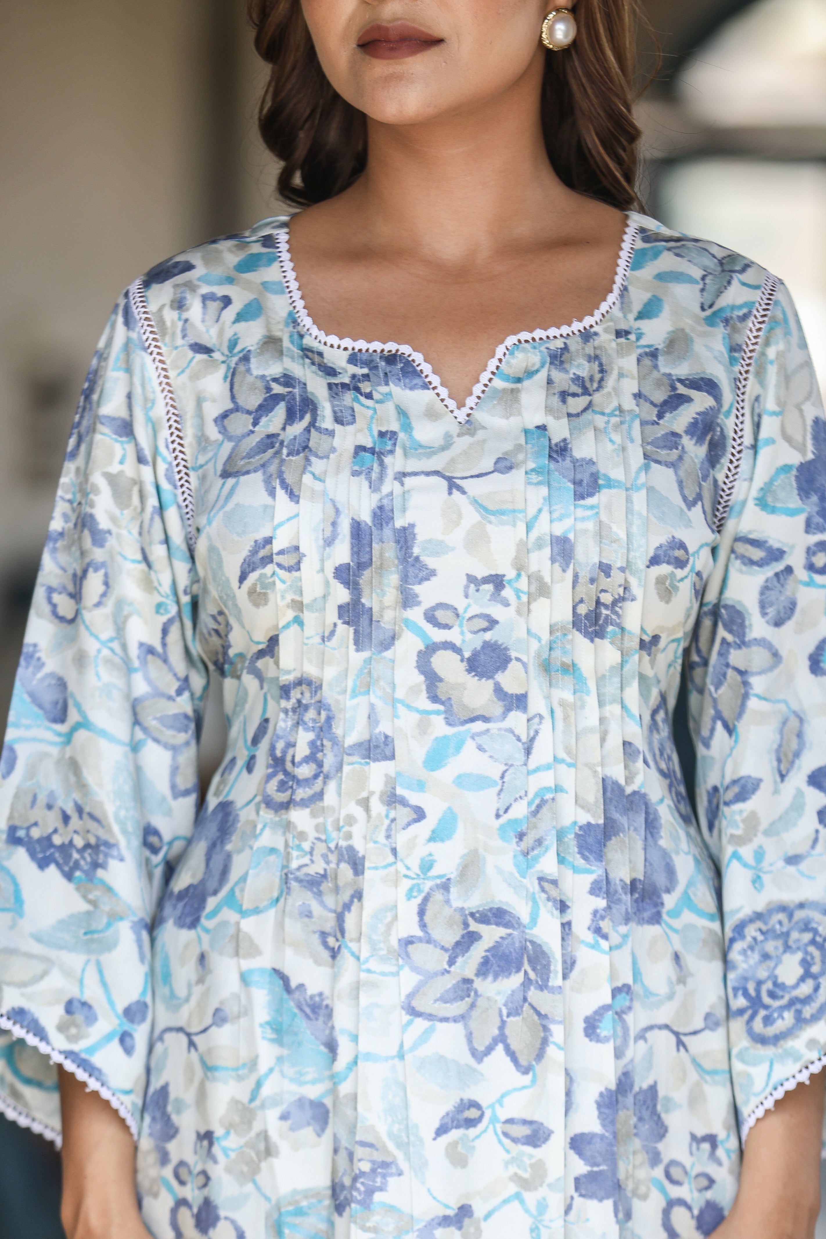 Digital Print Gazzi Silk Suit Set with Pintuck Detailing