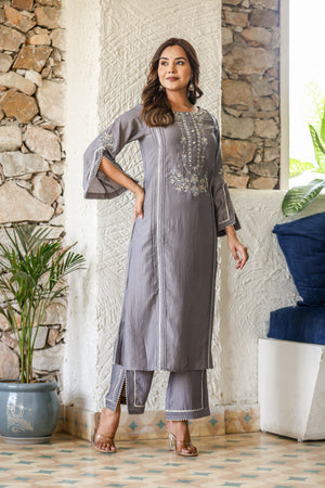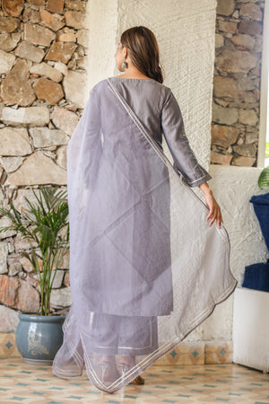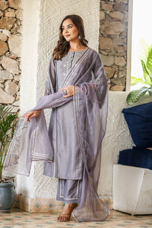 Discover timeless elegance in this premium 2-piece suit set, crafted from high GSM viscose blend silk (Gazzi Silk) that offers a rich drape and luxurious feel. The kurta features delicate pintuck detailing and is accentuated with premium lace trims, adding a subtle yet refined finish.
