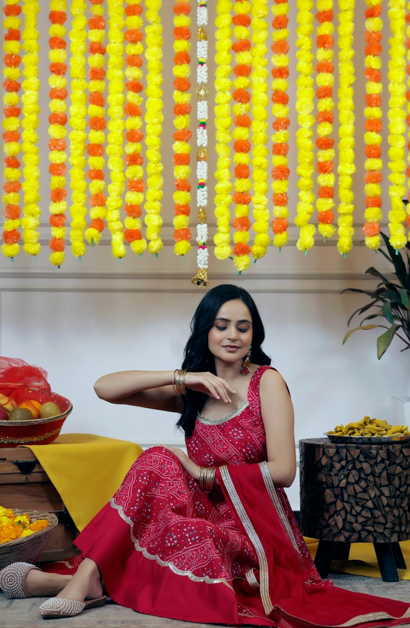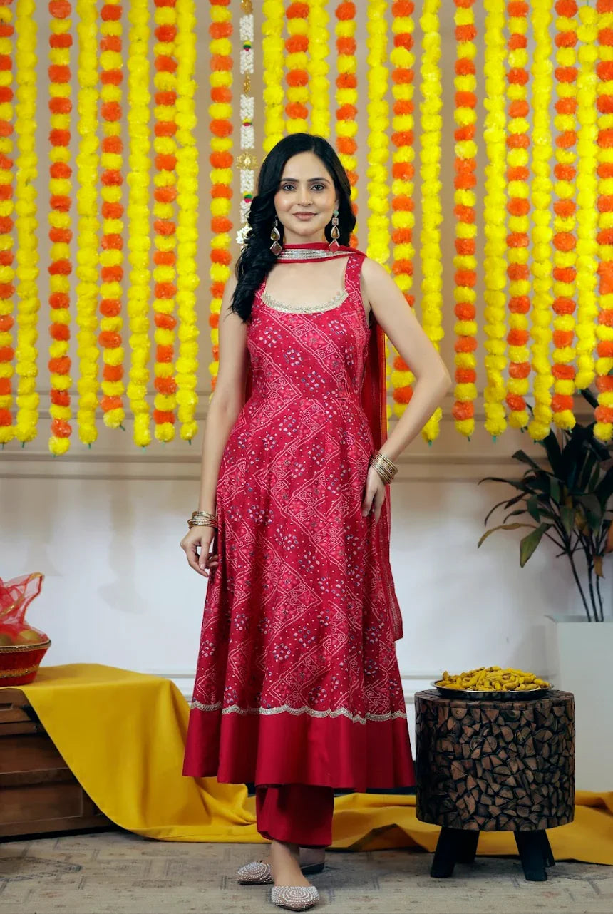 Flex Muslin Anarkali Kurta & Pants 3-Piece Set with Net Dupatta