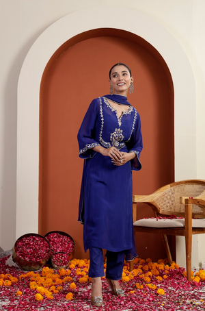 This refined hand-embroidered silk organza kurta set is designed as a stylish 2-piece ensemble featuring an elegant inner kurta. The top is crafted in a premium silk-blend organza, paired with a comfortable cotton satin bottom that offers structure and ease.