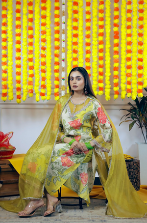 Viscose Muslin Straight Kurta & Pants 3-Piece Set with Organza Dupatta