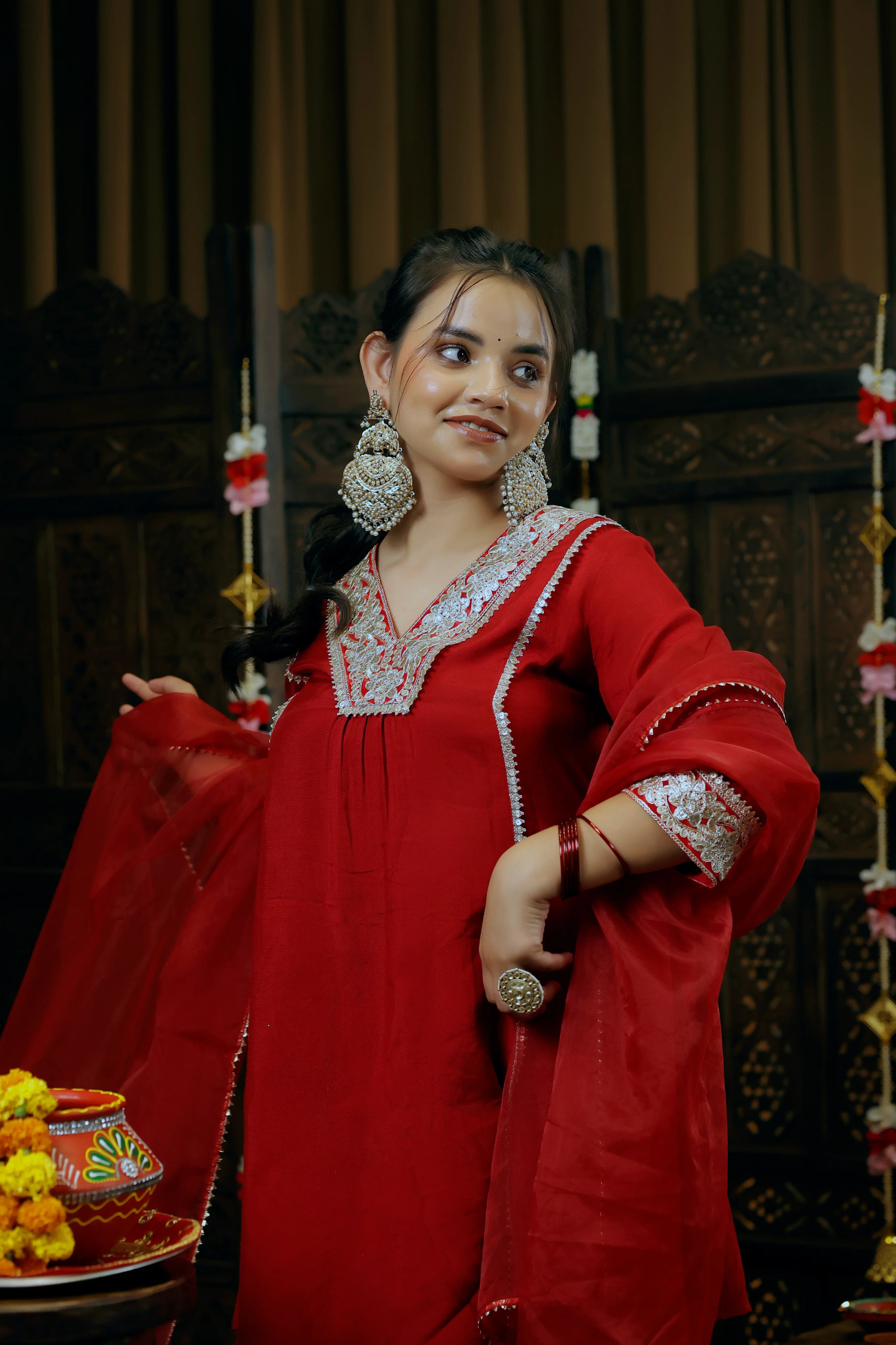 Colours made using natural or dark dyes may bleed slightly during the first few uses or may rub against the skin and lighter garments. As many of our products involve handcrafted techniques such as embroidery, detailing, and stitching, minor variations may occur. These variations are a natural part of the handmade process and enhance the individuality of each piece.