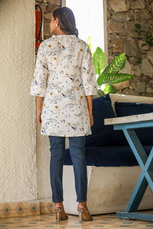 White Multi-Print Top in Natural Rayon